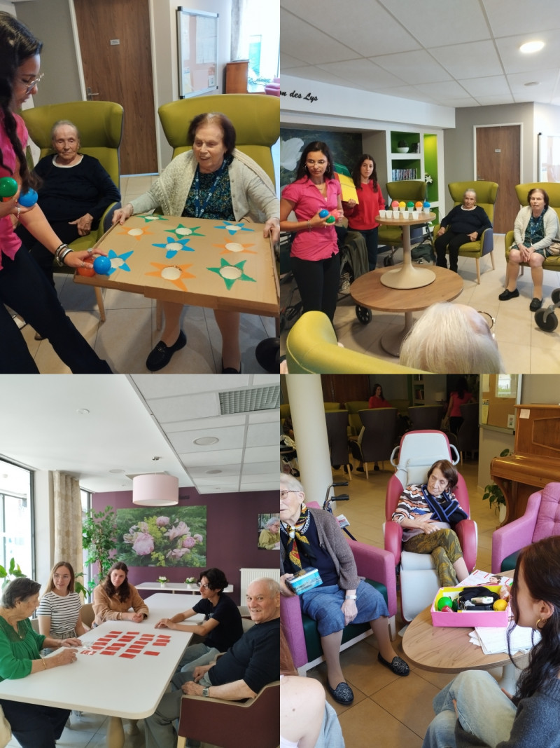 Dans le cadre de leur formation, les élèves du Lycée Saint-Vincent de Paul ont eu l’opportunité de venir mettre en pratique les animations qu’ils avaient soigneusement élaborées. Ces animations, variées et adaptées aux goûts des résidents, ont permis de créer des moments de partage, de rire et de convivialité. Qu'il s'agisse de jeux de motricité ou d’ateliers mémoire, chaque activité a été conçue avec soin pour apporter joie et dynamisme. Cette initiative a non seulement permis aux élèves de développer leurs compétences en animation, mais a également offert aux résidents une parenthèse de bonheur et de découverte. Nous remercions chaleureusement les élèves et leurs encadrants pour leur engagement et leur bienveillance.