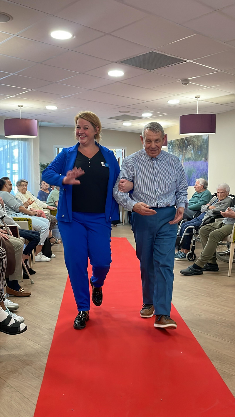 Afin de renforcer ces objectifs, nous avons proposé un défilé de mode. Le matin, les résidents ont choisi leur tenue et l’après-midi, ils ont défilé sur le tapis rouge accompagné de membres du personnel. Un bon moment de partage et de joie.